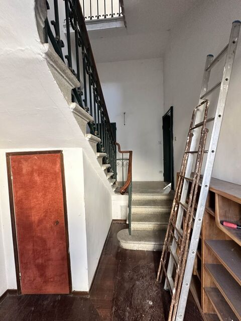 First Floor (approx. 170 sqm): Accessed via internal staircase, featuring a spacious living room with fireplace, eat-in kitchen, dining room, two double bedrooms, two bathrooms and hallway. Generous original windows flood all rooms with natural light.