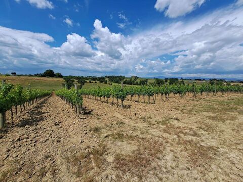 in southern Tuscany, within the municipality of Montepulciano, we offer for sale a 5.5-hectare plot of land, of which 3.6 hectares are planted with vineyards and 1.9 hectares are arable land. The vineyard includes several varieties of grapes, such as 0.2 hectares of Vino Nobile, 1.5 hectares of Rosso di Montepulciano, 0.6 hectares of Chianti, 0.5 hectares of Merlot, 0.5 hectares of Vermentino, and 0.3 hectares of Trebbiano and Malvasia.