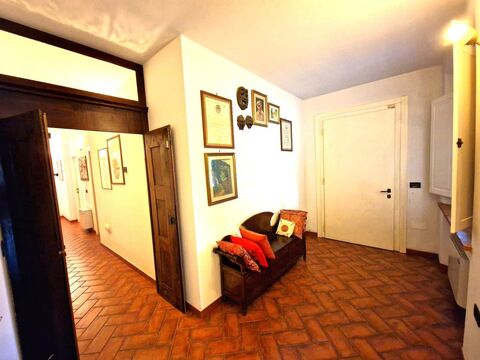 We offer for sale a prestigious semi-detached villa of approximately 300 sqm, perfectly embodying the essence of rustic Tuscan style combined with modern comfort. The entrance opens onto an extraordinarily bright living room, centered around a large fireplace that serves as both an architectural and social focal point. The spacious and functional eat-in kitchen opens directly onto an outdoor porch, perfect for al fresco dining. The main floor includes three cozy double bedrooms, two bathrooms with showers, and two practical storage rooms. A standout feature is the potential to connect a second independent apartment, comprising a living area with an open kitchen, two spacious rooms, and a bathroom; an ideal solution for extended families or guests. The property is equipped with cutting-edge technology: methane heating, air conditioning, water softener, central vacuum system, and perimeter alarm.