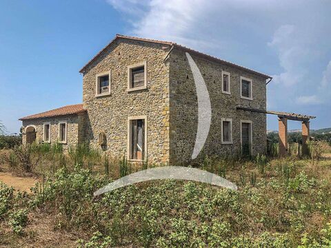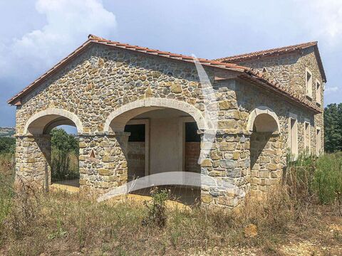Located in Manciano, just 6 km from the town center, this charming newly built stone farmhouse offers breathtaking panoramic views of the surrounding Tuscan landscape. Set on a hilltop overlooking vineyards and olive groves, it's an ideal retreat for those seeking peace and a closer connection to nature. The property is surrounded by approximately 4.5 hectares of land, divided between arable land and woodland, ensuring privacy and a serene environment.