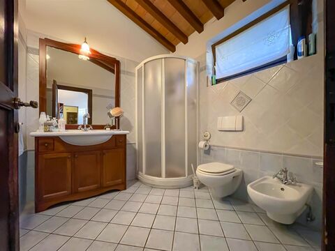 The farmhouse is in a strategic location, ideal for those seeking a retreat away from the hustle and bustle, but still well connected to Tuscany's main cities. Florence is just a 25-minute drive away, with the option to take the train or bus to reach it in 35 minutes. The area is well-served by shopping centers, train stations, schools, and other essential services.