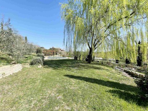 Set in a peaceful panoramic setting within a restored hamlet, the villa is surrounded by a lush garden featuring a private swimming pool shaded by a majestic willow tree. The highlight is the impressive botanical garden with a wide variety of international plants that bloom throughout the year, creating a vibrant and colorful frame around the home. The exterior also includes a large loggia equipped with a masonry kitchen and oven, ideal for outdoor meals, a spacious garage, and over 6,000 sqm of well-maintained land with olive trees, fruit trees, and beautiful roses.