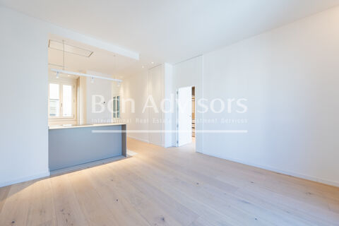 The flat is equipped with natural oak parquet floors and air conditioning by aerothermal heating. The light-filled interior offers comfort and a cosy atmosphere to relax in. Impeccable finishes and a tasteful neutral colour palette allow the new owners to effortlessly personalise their living space and make it their own. The building has a lift and concierge.