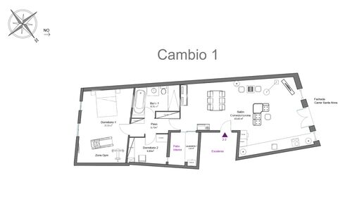 The property has 101 built interior sqm. The living room is very cosy with views of the street and a gallery overlooking the building's interior courtyard. Then there is a hallway with built-in wardrobes that leads to the master bedroom, with views of an interior block courtyard and plenty of natural light. On either side of the hallway there is a bathroom with a bath and shower and a room used as a dressing room with more wardrobes. However, there is the possibility of creating two bedrooms and two bathrooms (see renovation proposals in the plans).
