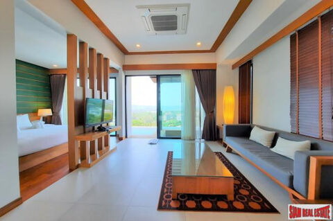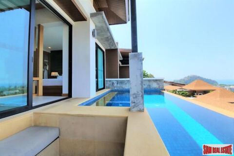 Embrace the beauty of Ao Nang with this gorgeous 1-bedroom villa, featuring a private pool and panoramic sea and mountain views. Perfectly positioned on a hillside, you'll enjoy mesmerizing sunsets from the western-facing balcony. The spacious, open-plan design includes a cozy living area, modern kitchenette, and a beautifully appointed bedroom with direct access to the pool. The ensuite bathroom offers a walk-in shower, adding to the villa's tranquil, modern vibe.