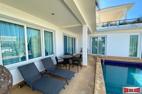A large and completely furnished three bedroom, three bath house for sale in Mountain Village 2. This roomy home is 320 sqm on a big 632 land plot and has a nice 124 sqm roof top terrace. The home has a large open living space with a living room, dining area and equipped western kitchen. The kitchen has an island-style work station that is also a breakfast bar on one side for casual dining. All three bedrooms have built-in wardrobes and ensuite bathrooms.
