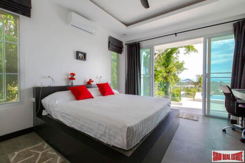 Decorated in modern Thai style this three bedroom, three bath pool villa is situated in the hills overlooking Nathon Pier. This 178 sqm home is two storeys and has a 21 sqm private salt chlorinator swimming pool. There are three ensuite bedrooms and a huge open plan living space.