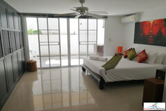 Featuring a very well-appointed detached Lagoon Villa at The Village @ Horseshoe Point. This characteristic property is very spacious with some 440 square meters of useful interior space. There are four bedrooms, three with ensuite bathroom, and one the bedrooms is currently being used as an office. The master bedroom, on the second floor, is spectacular with its 4-posted bed and wood-paneled dome ceilings, large walk-in wardrobe and en-suite bathroom. There is a fourth separate guest bathroom.