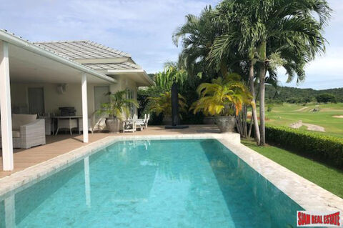 A three bedroom luxury villa for sale on the Black Mountain Golf Course. Enjoy green golf course views and the majestic Hua Hin mountains from the terrace and private swimming pool.