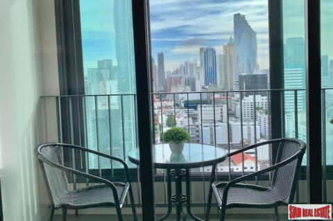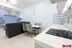 Nice city view from this one bedroom, one bath condo for sale. Situated on the 27th floor this apartment has an open living room and dining area. The modern western kitchen is situated next to the dining space and has a stovetop, microwave, refrigerator and washing machine. A balcony with an outdoor dining set is just off the living room. There is a spacious bedroom with a big bed and an ensuite bathroom with bathtub.