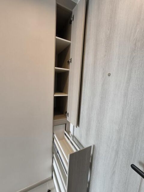 Built-in Furniture: Comes with a fully fitted kitchen, built-in wardrobe, TV console, bed frame, and storage cabinets.