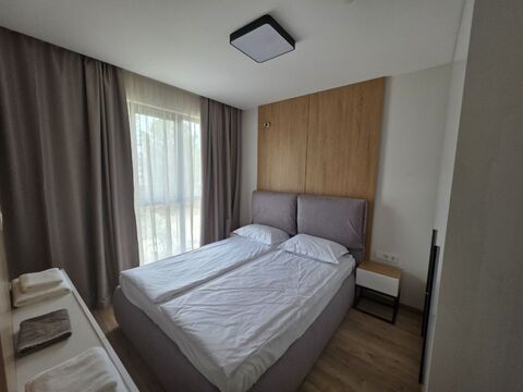 Brand new 1 BED apartment, 50 sq.m., in Emilia Romana Verde, Sunny beach 1 BED luxury apartment is offered for sale in the complex “Emilia Romana Verde”, Sunny Beach The Emilia Romana Verde complex is a brand new residential complex (Act 16 - 2025) located in the center of the resort town of Sunny Beach. Within walking distance from the complex there are: shops, cafes, restaurants, pharmacy, post office, bank, medical center, bus stop, etc. Complex infrastructure: - swimming pool with children's area; - parking; - restaurant; - bar; - 24-hour security. The apartment with a total area of 50 sq.m. is located on the 3rd floor and consists of: a spacious living room with a kitchenette, dining area,, one bedroom, a bathroom with shower and washing machine and a terrace with views to the surroundings. The apartment is contemporary furnished, equipped with appliances and ready to move in. Brand new furniture and appliances. Act 16; Suitable for year-round use and renting out. Distance from the sea - 800 m Maintenance fee - 16 euros per sq.m. *Price - 120000 EUR includes storage room