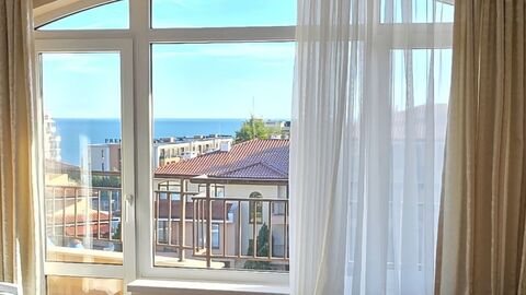 SEA VIEW top floor apartment, 65 sq.m., in Panorama Dreams, Sveti Vlas, 100 m to the sea We are pleased to offer this 1 bedroom apartment in excellent condition in complex Panorama Dreams in sea resort of Sveti Vlas. Distance to the beach is 100 m. The apartment is situated on the 4th - top floor (there is a lift) and has a total area of 65 sq.m., comprising of: - open-plan kitchen + lounge; - one bedroom; - bathroom/WC; - common balcony for both rooms, with views to the sea and complex. The apartment is fully furnished and all the furniture is included in the price as it is shown on the photos. The kitchen is fully fitted and has oven, ceramic hob, fridge, extractor, coffee maker, toaster. Lounge area offers sofa-bed, coffee table, TV, dining set. The bedroom is furnished with a double bed and a wardrobe. About the complex: Panorama Dreams is located only 150 meters away from the sea coast in the quiet area between the famous resort Sunny Beach and St. Vlas. It consists of three separate buildings, situated around river-like swimming pools, flowing into each other. Because of its excellent location, most of the apartments have a magnificent sea view and face both Sunny Beach and the Old Town of Nessebar. On site facilities: Sport activities, relaxation and entertainment: large swimming-pool, tennis court, 24 hrs security and maintenance, private access, green areas, parking lot. Maintenance fee - 11.5 EUR/sq.m.
