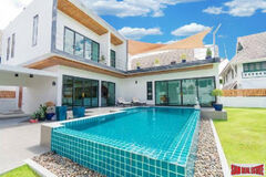 Contemporary loft design private pool villas for sale. These are tropical biophilic villas and with a superior property management team. The villas will offer three ensuite bedrooms and an additional fourth bathroom. Two and three storey houses are available.
