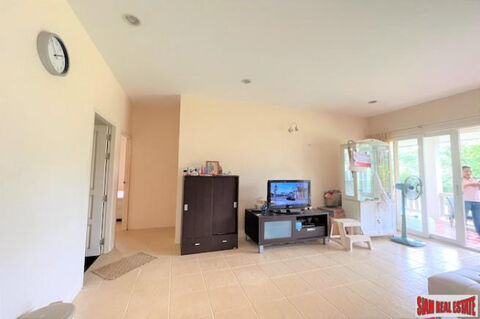 This private, detached house is situated on a 4 Rai land plot and has a living area of 120 square meters. There is a lush green garden that surrounds the house.