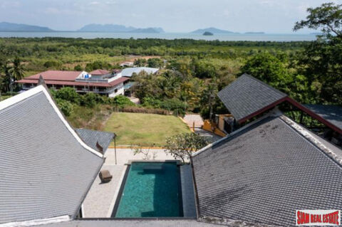 A fully functional kitchen built to the highest of western standards with top quality appliances is set in the north corner of the villa. Flowing from the kitchen, the 7m high vaulted roof with a sweeping ceiling fan steps down into the window-lined dining room with terracotta floor tiles, capable of seating 10 guests at the solid teak dining table. A traditional covered massage/yoga sala plus stunning views of Krabia€™s a€˜cliff islandsa€™ sits outside the dining area and will surely be the toast of any dinner party.
