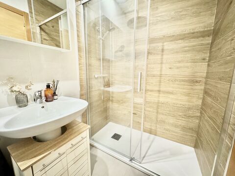 The bathroom is a good size and has recently had a modern and tasteful walk in shower installed.