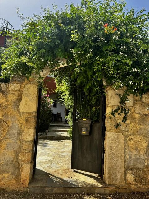 Outside: the spacious courtyard garden is very private with high stone walls and includes off road parking, a well, an olive tree, walnut tree, pomegranate tree, a jasmine covered wooden garden swing and terracotta pots - the quintessential Greek courtyard!