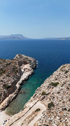 Kera is located 20km east of the city of Chania, between Kalyves and Almyrida. It is located at the end of a steep green slope, between Kalyves and Almyrida, which leads to the beach after 500m. The beach combines blond sand and pebbles and is located in a wonderful landscape, with high cliffs at its ends. The sea is shallow and crystal clear. Kera overlooks the islet of Karga to the east, where many birds find shelter. Conversely, to the west, there is a beautiful, elongated rock that the locals call Karavos, because it resembles a ship.