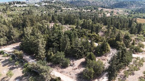 The plot is situated in an excellent location, surrounded by tall trees such as cypresses and pines, creating a natural and lush environment reminiscent of a forest.