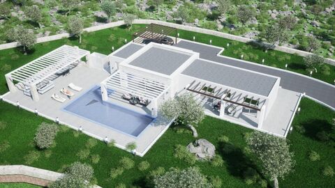 Construction of the villa with stone finishing from natural Cretan stone using the latest technologies and materials, including modern engineering systems and video surveillance. For complete privacy, the area around the house will be surrounded by a stone wall.