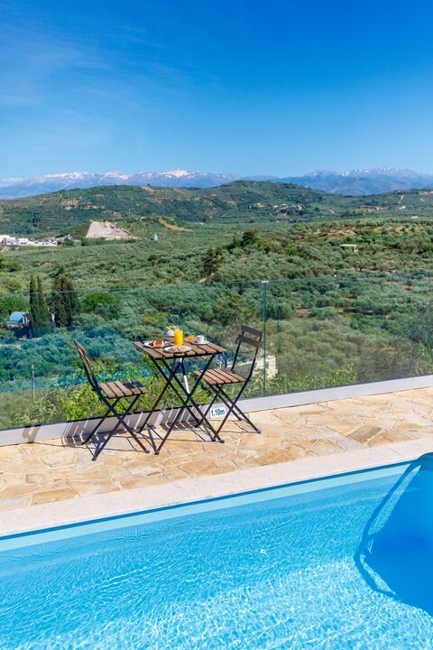 It is located in the small traditional village of Kamara, and it has been arranged over 2-floors, surrounded by gardens and breathtaking views. The villa consists of an open plan sitting, dining, kitchen area, 3 bedrooms and 2 bathrooms.