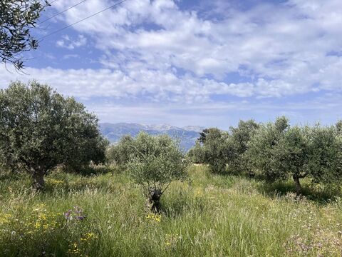 The plot contains a few mature olive trees and different trees. Electricity and water mains are next to it.