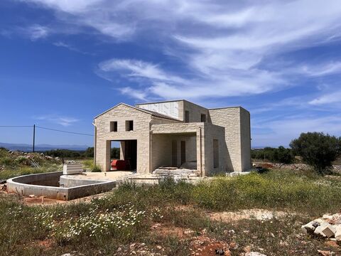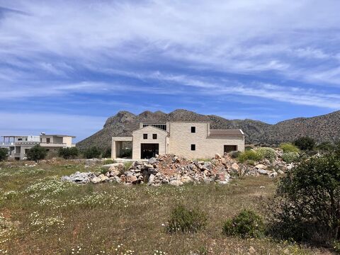 For sale two semi-completed stone independent maisonettes with a total area of 160 m2 with a remaining building capacity of 80 m2 on a plot of 4704 m2. It is located in Chorafakia and was built in 2018. It consists of 2 levels, ground floor and 1st floor. Each consists of 1 living room, 1 kitchen, 2 bedrooms, 2 bathrooms, pool and terraces. It could be converted into a single residence.