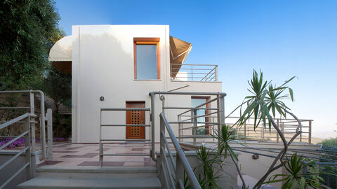 For sale an elegant three-storey detached house of 200 m2 built on a plot of 7900 m2. The property is located on the top of a hill, in the tranquil village of Patellari in Platanias municipality, offering stunning and panoramic views over the hinterland the Keritis River and majestic White Mountains. The property offers extreme privacy and amazing peace.