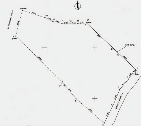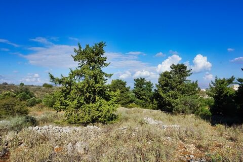 The plot has a slight slope and offers beautiful views of the White Mountains and sea. It has shrubby vegetation and 3 cypress trees. A large part of the property is fenced with a low, stone wall.