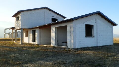 in the country side of 'Montebello di Bertona' village, in a private and at the same time easily accessible position, from which it is possible to enjoy a spectacular view of the mountains up tp the sea, a villa on 2 levels to be completed, consisting of;