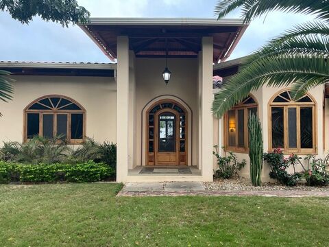 The entrance to the property is through an immense wooden door which winds you down a paved driveway through beautifully landscaped grounds scattered with indigenous trees and flora in an array of colorful hues offering shade as well as privacy.
