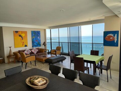 Live the dream on Chipipe Beach, one of the most sought-after and serene areas of Salinas, Ecuador. This impressive 220 m2 oceanfront condo offers the rare privacy of one full-floor per unit, combining space, light, and uninterrupted Pacific Ocean views in a truly privileged setting.
