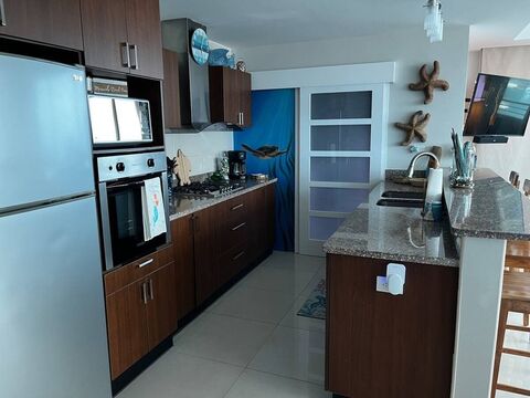 Welcome to this fully furnished, move-in-ready condo located on a high floor in one of Salinas' premier amenity buildings, right on the popular Malecon. With approximately 1,800 square feet of living space, this expansive 3-bedroom, 3.5-bath residence offers comfort, style, and convenience all in one.