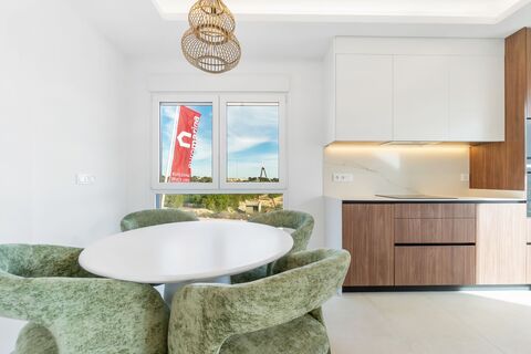 From the living room, sliding doors open onto a lovely south-facing balcony, perfect for morning coffee or evening relaxation with views of the pool area, surrounding greenery and the shimmering salt lakes beyond - a constant reminder that you are in one of Costa Blanca's most desirable locations.