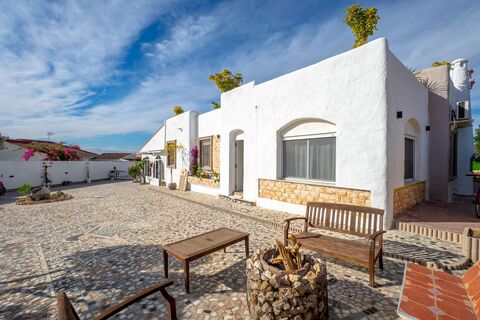 We at Bjurfors Real Estate are pleased to present a very generous accommodation on an unusually large plot, centrally located in the heart of Ciudad Quesada. Here you live within easy walking distance of the main street where a wide selection of restaurants, bars and shops create a lively atmosphere. The plot offers several inviting environments for socializing and relaxing, with a nice pool area, barbecue area and a neat garden that frames the entire property in a harmonious way.