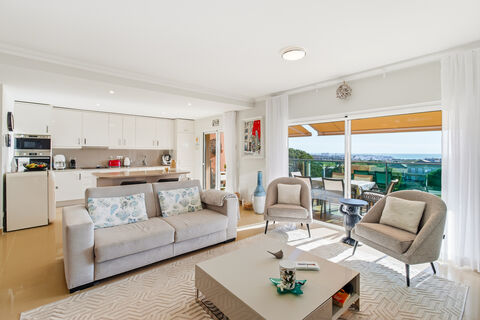 This room opens onto a large south-southeast facing terrace where you can enjoy outdoor meals protected from the sun by electric awnings, from which you can enjoy the fantastic open view of the golf and Lagos Bay.