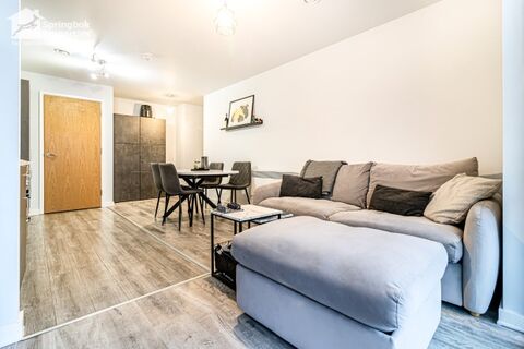Set within a modern waterside development a short walk from the River Irwell, this city home offers a bright, open-plan living/kitchen space that lends itself to everyday cooking and relaxed entertaining, opening through full-height glazing to a private balcony for fresh-air dining.