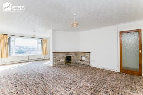 Internally, the accommodation offers tremendous potential, with two bright conservatories extending the living spaces, a spacious kitchen/breakfast area with countryside views, and a utility room for added practicality. The extended lounge, stretching the full depth of the property, is perfectly positioned to capture sweeping coastal vistas through wide front-facing windows.