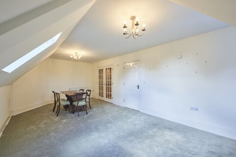 Both bedrooms enjoy views over the treetops and come with built-in wardrobes. The main bedroom also benefits from an en-suite shower room, while a separate family bathroom completes the interior. The property's neutral decor and practical layout provide a blank canvas for buyers to personalise to their own taste.