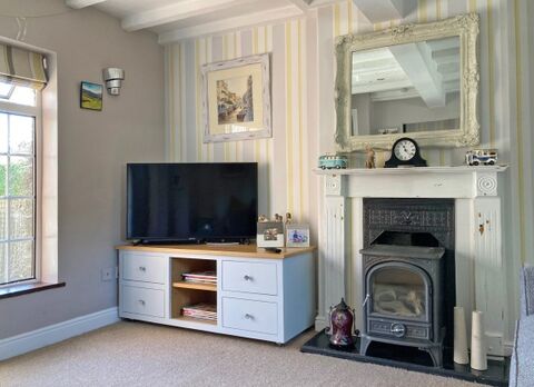 Bright and welcoming lounge with Inglenook fireplace and log-burning stove
