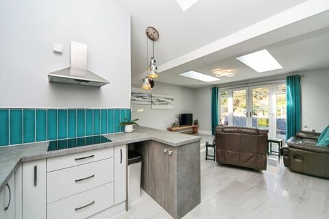 Stunning Open-Plan Living Space with Skylights and French Doors to Garden
