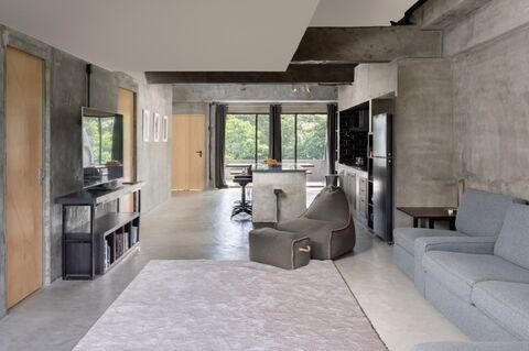 Boasting a total of 130 square meters, this 1-bedroom, 1-bathroom, and an additional guest toilet seamlessly blends industrial chic with modern comfort, creating a truly captivating living space.