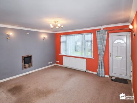 Inside, the home features a bright lounge with a feature wall and central fireplace, creating a warm and welcoming space for relaxing or entertaining. The adjoining kitchen provides ample storage and natural light, while a rear conservatory provides a peaceful spot overlooking the garden. Two good-sized bedrooms and a family shower room complete the accommodation, offering flexibility for guests or a home office.
