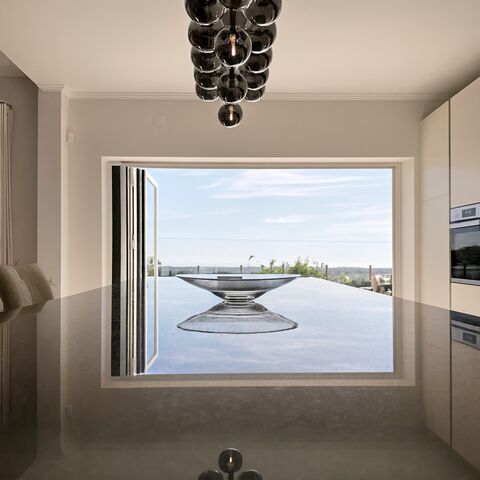 Slide open the glass doors and step directly onto the impressive pool terrace. The heated pool is framed by dramatic sea views, with abundant space for sun loungers, outdoor dining, and moments of pure relaxation. A dedicated barbecue area just off the terrace provides yet another spot for enjoying long summer days, whether soaking up the sun or seeking the shade.