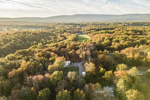 Welcome to Bruyn Estate, an exceptional Hudson Valley compound that brings together historic character and modern comfort across two remarkable homes: a lovingly restored 1835 Greek Revival farmhouse on the National Register of Historic Places, and a reimagined log home reconstructed from 1850s barn beams. The property is steeped in history: in the 1800s, it was a sheep farm that supplied wool garment materials to Brooks Brothers, and in the 1980s, it was owned by the great-grandson of the founder of Singer Sewing Machines. Set on 8.5 private acres with pastoral views and open lawns, this established short-term rental and event venue offers beauty, income potential, and timeless charm. The farmhouse captures the timeless appeal of early American architecture, with wide-plank floors and original details carefully preserved. Modern updates include a designer kitchen and primary bath with radiant heat, and stylish wallpaper and fixtures throughout. Two Rumford fireplaces and a pellet st