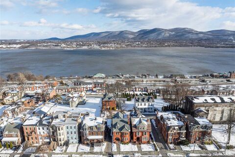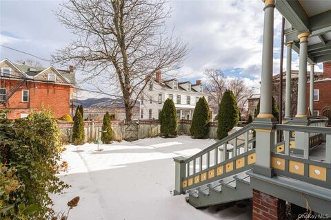 Welcome to The Isaac Chapman House, a distinguished three-story brick Queen Anne residence built in 1885, and one of Newburgh's most celebrated architectural landmarks. Commissioned by Isaac Chapman, a significant 19th-century civic leader and one of Newburghs most successful businessmen, the house marked a pivotal moment in the city's architectural renaissance. Under prominent architect Elkanah Shaw's direction, it broke from the repetitive Italianate townhouses of the 1870s and ushered in a new age of creative design. Elaborate patterns adorn the slate roof, and Eastlake-style floriated carvings line the cornice. The masterful use of detail represents the finest Queen Anne craftsmanship in the Hudson Valley. Featured in films and a major Netflix series, this historic treasure has been meticulously restored to preserve every historic detail, from the encaustic-tiled entry beneath a Syrian arch and original Lincrusta wainscoting to the Vermont slate roof, while introducing refined