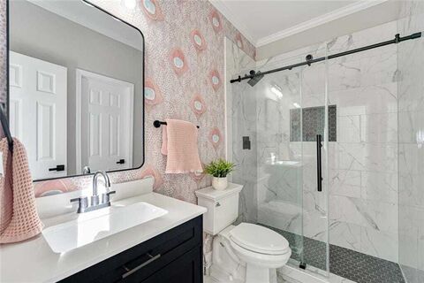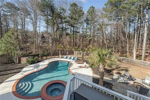 FIVE STARS!! Serene, coastal vibes in this resort-like property in one of the top Johns Creek neighborhoods! This stunning home has been RENOVATED TOP TO BOTTOM, and offers a truly exceptional and move-in ready living experience. The private, fully fenced estate lot sits at the end of a cul-de-sac and hosts a SPARKLING POOL/SPA with waterfall feature, fire pit, and full outdoor kitchen all of which will make you never want to leave home! Enter the home through new iron doors that provide an edge of grandeur to the house. Sunlight fills the open spaces of the light & bright two story foyer with on-trend white oak flooring that sets the stage for the pretty renovations throughout the house. The kitchen is truly a GOURMETS DELIGHT with its new cabinetry, high end quartz counters, large island with waterfall feature and seating for 4, top-of-the-line 48 gas eight-burner range with double oven and custom built in hood, 60 built in fridge, full walk-in pantry, and entertaining bar