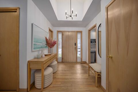 You could be living the dream on Poughkeepsies south side! Enjoy one level living in this expanded ranch with a Mid Century Modern vibe. The striking design harmoniously blends with nature, creating a private outdoor retreat. Situated on 1.5 acres with an in-ground pool, this home offers 4 bedrooms, 2 full and 2 half baths. This home perfectly balances space and privacy for you and your nearest and dearest. The open layout offers flexible space for entertaining, while smaller, thoughtfully placed nooks provide options for quiet retreat. The open floor plan showcases the oversized windows, sliders and skylights, filling the home with natural light and enhancing the connection between indoor and outdoor spaces. A separate entrance leads to a large room and 1/2 bath (can easily be adapted to a full bath), providing flexible space suitable for a home office, exercise area or additional living space. The living area, centered around a brick, gas fireplace, invites you to gather and creat