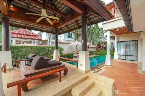 This 4-bedroom pool villa for sale in Laguna, Phuket is set on a corner plot and enjoys views of the golf course. The interiors feature warm terracotta floor tiles and earthy tones that complement the surrounding greenery. With its golf course setting, generous proportions, and established location, the villa offers enduring appeal in one of Phuket's most consistently sought-after residential and holiday areas.